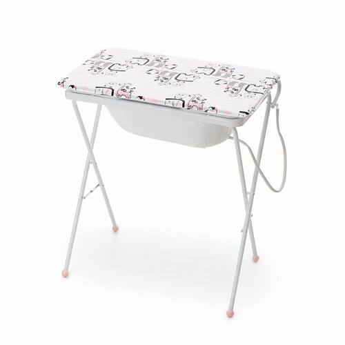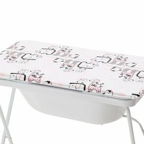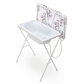 Características: Banheira desmontável; Capacidade máxima da banheira -bebê + água- = 20kg; Banheira 2 em 1: O tanque pode ser utilizado no suporte ou fora; Tampo-trocador almofadado. Suporte em tubo de aço