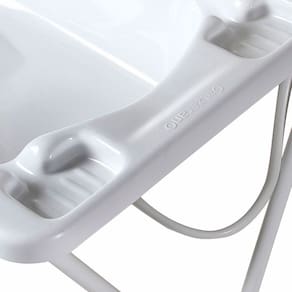 A Banheira Standard II da Galzerano possui um suporte alto, trocador com proteção lateral e conta com uma mangueira que ajuda no escoamento de água do tanque. É durável e acompanha o bebê em seus primeiros meses.