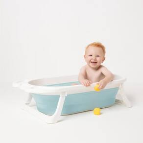 Características: Superfície lisa do fundo da Banheira. Suportes antiderrapantes (prevenção de perigo de queda). Alça projetada para facilitar o transporte, pode ser usada para colocar a toalha ao dar banho ao bebê. Pode ser pendurado na parede para economia de espaço e higiene. Possui antiderrapante no fundo da banheira. Estrutura plástica Design compacto Pernas retráteis Trava de segurança (impede o fechamento involuntário) Válvula para escoamento da água Limite de peso: 30 kg Medidas aproximadas: Fechada 7 cm x 85,5 cm x 50 cm. / Aberta 22 cm x 85,5 cm x 50 cm Idade: 0 a 3 anos.