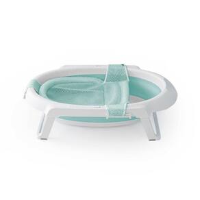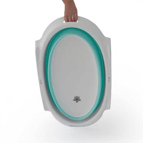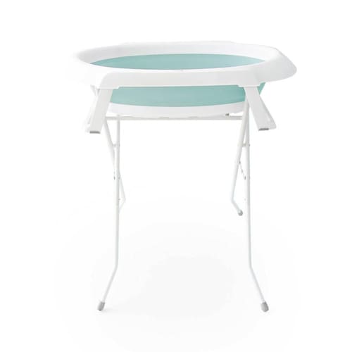 Banheira dobrável com fechamento super compactoSuporte para uso como banheira altaPés dobráveis para ser usada como banheira de chãoRedutor removível para os recém-nascidos de fácil encaixe2 tipos de válvula: uma com mangueira para uso no suporte e uma para uso no chãoPorta-saboneteUso de 0 a 36 mesesCapacidade de até 35 L: 20 kg no suporte/ 35 kg no chão (peso da criança+água)