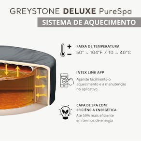 Banheira Spa Inflável Ofurô Intex PureSpa Greystone Deluxe 4 Pessoas 795L com Aquecedor e 140 Jatos