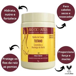 As proteínas do Tutano hidratam, nutrem e fortalecem. Enriquecido com manteiga de karité, que protege dos danos causados por agentes externos. Tem ação emoliente, contribuindo para a redução das pontas duplas em cabelos secos, desvitalizados e envelhecidos. Proporciona força e maciez. Tratamento intensivo para cabelo ressecado. pH 4,0. Dermatologicamente testado.