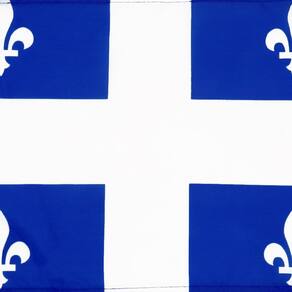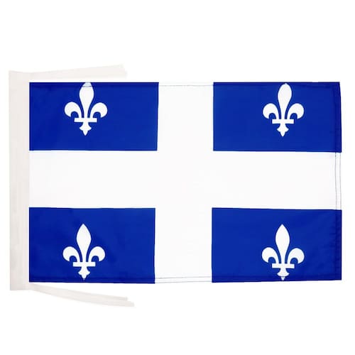 Banner bandera AZ FLAG de Quebec de 45 x 30 cm (18'' x 12'') con cuerdas - Canadá - región canadiense de Quebec, banderas pequeñas 30 x 45 cm - Banner 18x12 in - Terminación: Costuras y bordes reforzados - Colgado: Cuerdas 301 – abertura superior e inferior - Material: Poliéster 100D - Uso: Interior y exterior moderado - Empaque: bolsa de polietileno