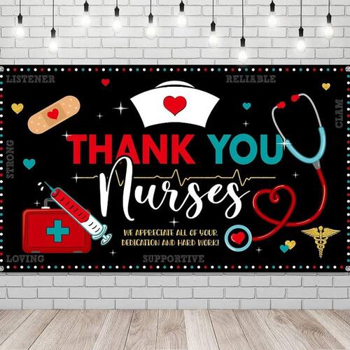 Material: poliéster Tamanho: 150 cm × 100 cm Peso: 160 g Nurse Appreciation Backdrop — Um design vibrante de “agradecimento às enfermeiras” com símbolos de saúde como seringas, band-aids, estetoscópios e o caduceu para homenagear e homenagear enfermeiras. Perfeito para o Dia das Enfermeiras — Ideal para a Semana da Enfermagem, celebrações do Dia da Enfermeira ou qualquer evento de valorização da saúde, este banner expressa gratidão a todas as enfermeiras trabalhadoras e atenciosas. Material de poliéster durável — Feito com poliéster de alta qualidade, esse pano de fundo é leve, durável e fácil de pendurar, garantindo que dure durante todo o evento. Fácil configuração — Vem com ilhós para pendurar sem complicações, tornando-o o complemento perfeito para a decoração do seu evento, cenário fotográfico ou área de festa. Ótimo para sessões de fotos — Torne sua festa ou evento do Dia das Enfermeiras ainda mais memorável usando esse cenário para fotos e selfies com colegas enfermeiros, amigos e colegas.
