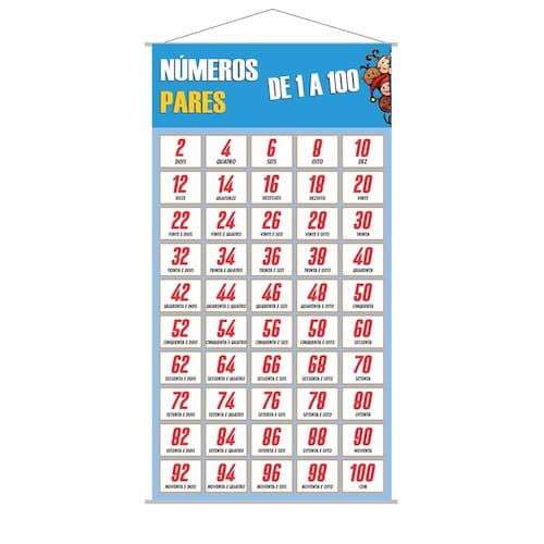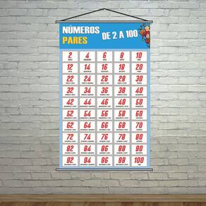 Banner Escolar Pedagógico Números Pares até 100 - 80x50cm - Selecione