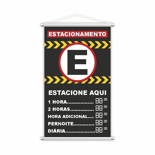 Se você busca um banner resistente, com boa visibilidade e acabamento de qualidade, o Estacionamento Estacione Aqui com Tabela de Horas e Preços é a escolha ideal para manter seu local organizado e proporcionar informações claras aos seus clientes.