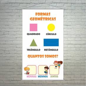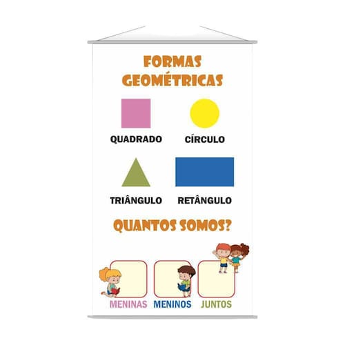 Banner Pedagógico Escolar - Formas Geométricas 120X65Cm TAMANHO: Banner com medida total de 120x65cm ACABAMENTO: Bastões de madeira + corda na parte superior. Atualmente existem diversas formas de aprendizado e a modernidade facilita e ajuda no desenvolvimento de cada passo escolar e pedagógico de uma criança. O banner pedagógico é uma delas, uma ótima forma de incentivar e começar a trabalhar a mente e praticar o aprendizado. Desenvolvemos diversos modelos de banners e cada um deles oferece apoio e ajuda no desenvolvimento em várias áreas. Quer ajudar os seus alunos a desenvolver esses aprendizados Os Banners Pedagógicos são excelentes para trabalhar de uma forma interativa o desenvolvimento dos alunos, facilitando na hora de ensinar e memorizar cada passo.