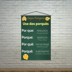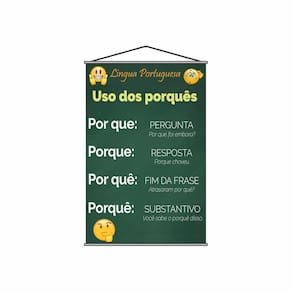 Banner Pedagógico Escolar Português Uso Dos Porquês 80X50Cm TAMANHO: Banner com medida total de 80x50cm ACABAMENTO: Bastões de madeira + corda na parte superior. Atualmente existem diversas formas de aprendizado e a modernidade facilita e ajuda no desenvolvimento de cada passo escolar e pedagógico de uma criança. O banner pedagógico é uma delas, uma ótima forma de incentivar e começar a trabalhar a mente e praticar o aprendizado. Desenvolvemos diversos modelos de banners e cada um deles oferece apoio e ajuda no desenvolvimento em várias áreas. Quer ajudar os seus alunos a desenvolver esses aprendizados Os Banners Pedagógicos são excelentes para trabalhar de uma forma interativa o desenvolvimento dos alunos, facilitando na hora de ensinar e memorizar cada passo.
