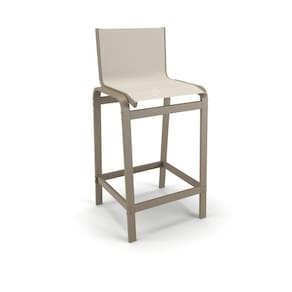 Banqueta Alta Bancada Alumínio Fendi Tela Bege