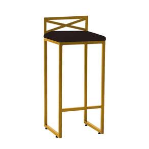 Banqueta Alta Com Encosto Ema Balcão Bar Cozinha Bistrô Ferro Dourado Corino Marrom - Ahazzo Móveis Cor Marrom