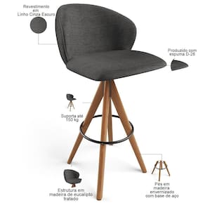 Color: Cinza | ColorFamily: Cinza | ColorSimple: Cinza | ColorSupplier: Cinza Escuro | Material: Estrutura em Madeira, Revestimento em Linho e espuma | MaterialFamily: Madeira, linho e espuma | Model: Mia | OriginCountry: Nacional | OriginState: PR | ProductContents: 01 Banqueta | ProductHeight: 100 cm | ProductInstructions: Produto para uso em ambiente interno, nao devendo ficar exposto ao sol, calor e umidade excessivos. | ProductLength: 49 cm | ProductWarranty: 90 dias após o recebimento do produto | ProductWeight: 10 kg | ProductWidth: 52 cm | SizeDescription: Altura: 100 cm x Largura: 52 cm x Profundidade: 49 cm | SupplierSimpleName: Banqueta Alta Bar Cozinha Sala de Jantar Bar Mia L02 Linho Cinza Escuro - Lyam Decor