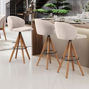 A Banqueta Alta Mia, da Lyam Decor, é a combinação perfeita de design orgânico, conforto e modernidade, expressos em cada detalhe, desde as linhas curvas do assento e encosto até os pés de madeira maciça envernizada. Em outras palavras, essa banqueta estofada é ideal para complementar sua sala de jantar ou estar com elegância e estilo. Além disso, a tapeçaria feita com espuma D-26 oferece um conforto excepcional, permitindo que você desfrute de momentos prazerosos durante suas refeições ou conversas com amigos e familiares. Para completar, essa cadeira de jantar moderna é perfeita para quem busca uma sala de jantar contemporânea, já que seu design único traz uma sensação de beleza e sofisticação ao ambiente e, ainda, harmoniza facilmente com diversos estilos de mesa de jantar. A Banqueta Mia é o equilíbrio perfeito entre funcionalidade e design, uma vez que pode facilmente ser utilizada em diversos ambientes, como área gourmet, cozinhas, bancadas e até em eventos eventos. Adicione esse elemento indispensável à sua decoração e transforme qualquer ambiente em um lugar especial. Não perca a oportunidade de adquirir essa banqueta alta que vai encantar a todos.