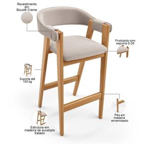 Color: Creme | ColorSimple: Creme | ColorFamily: Creme | ColorSupplier: Creme | Material: Estrutura em Madeira, Revestimento em Bouclê e espuma | MaterialFamily: Madeira, Bouclê e espuma | Model: Nadja | OriginCountry: Nacional | OriginState: PR | ProductContents: 01 Banqueta | ProductHeight: 100 cm | ProductInstructions: Produto para uso em ambiente interno, nao devendo ficar exposto ao sol, calor e umidade excessivos. | ProductLength: 53 cm | ProductWarranty: 90 dias após o recebimento do produto | ProductWeight: 10 kg | ProductWidth: 52 cm | SizeDescription: Altura: 100 cm x Largura: 52 cm x Profundidade: 53 cm | SupplierSimpleName: Banqueta Alta Bar Cozinha Sala de Jantar Bar Nadja L02 Bouclê Creme - Lyam Decor