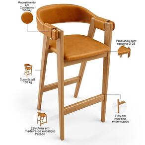 Madeira | Revestimento em Couro sintético e espumaA Banqueta Alta Nadja da Lyam Decor, é a escolha perfeita para criar uma sala de jantar moderna e acolhedora. Com seu design curvo e pés de madeira maciça envernizada, essa banqueta estofada traz elegância e sofisticação ao ambiente. Além disso, é tapeçada com espuma d-26, o que proporciona um conforto excepcional, permitindo que você desfrute de momentos incríveis à mesa. Já o design orgânico combina beleza e modernidade, tornando-a uma peça única, enquanto os braços adicionam um toque extra de conforto e estilo. A Banqueta Nadja é o equilíbrio perfeito entre funcionalidade e design, uma vez que pode facilmente ser utilizada em diversos ambientes, como área gourmet, cozinhas, bancadas e até em eventos eventos. Adicione esse elemento indispensável à sua decoração e transforme qualquer ambiente em um lugar especial. Não perca a oportunidade de adquirir essa banqueta alta que vai encantar a todos.