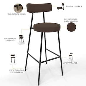 Amplamente moderna, dispondo de muito realce e design singular, a Banqueta Alta Bar Cozinha Sala De Jantar Estrutura Em Aço Milão L02 Suede Marrom - Lyam Decor vem com a personalidade e elegância que sua decoração merece! Estruturada em aço carbono, contrasta lindamente com o encosto e assento estofados, cabe mencionar ainda seu revestimento em Linho, é confeccionada por materiais de excelente qualidade, extremamente resistentes e aconchegantes.