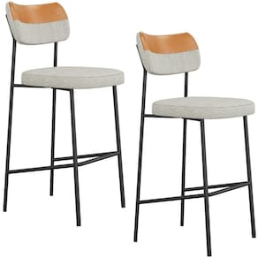 Banqueta Alta Bar Estofada Kit 2 Milli Linho Caramelo/Cinza A14 - Mpozenato