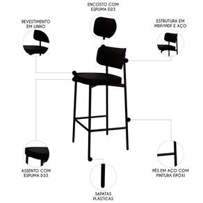 O revestimento em linho oferece um toque sofisticado ao kit de banquetas, enquanto o assento em espuma D33 proporciona um conforto superior, adequado para longos períodos de uso. O encosto curvado com espuma D23, complementa a experiência de conforto e estabilidade. Produzida com MDF/MDP no assento e encosto, a banqueta garante robustez e resistência. A estrutura em aço com pintura epóxi da Banqueta Para Bancada assegura durabilidade, tornando-a ideal para ambientes dinâmicos, como Cozinhas, bares e áreas gourmet. Sua combinação de design moderno e materiais de alta qualidade faz da Banqueta Cozinha uma excelente escolha para quem busca praticidade, estilo e longevidade em seus móveis.
