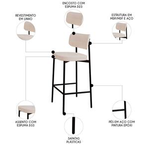 O revestimento em linho oferece um toque sofisticado ao kit de banquetas, enquanto o assento em espuma D33 proporciona um conforto superior, adequado para longos períodos de uso. O encosto curvado com espuma D23, complementa a experiência de conforto e estabilidade. Produzida com MDF/MDP no assento e encosto, a banqueta garante robustez e resistência. A estrutura em aço com pintura epóxi da Banqueta Para Bancada assegura durabilidade, tornando-a ideal para ambientes dinâmicos, como Cozinhas, bares e áreas gourmet. Sua combinação de design moderno e materiais de alta qualidade faz da Banqueta Cozinha uma excelente escolha para quem busca praticidade, estilo e longevidade em seus móveis.