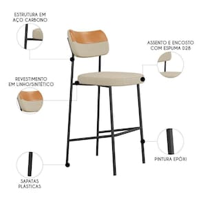 Banqueta Alta Bar Estofada Kit 8 Milli Linho Caramelo/Areia A14 - Mpozenato