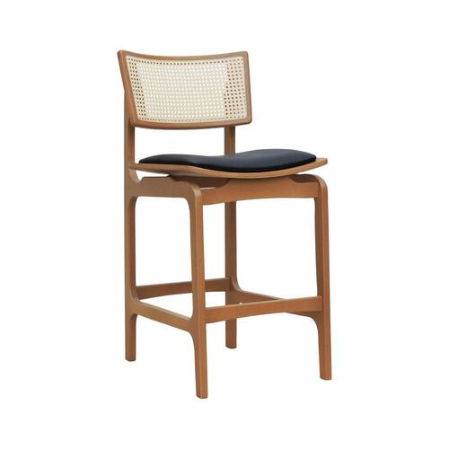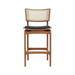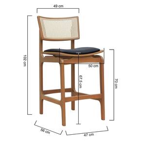 Banqueta Alta Bistrô Apollo Encosto Telinha Natural e Assento Anatômico - Natural Estofado Corano Preto -