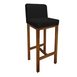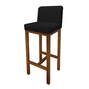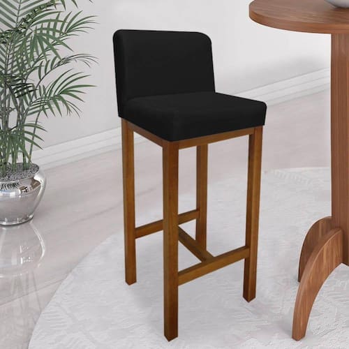 Banqueta Alta Com Encosto Aila Balcão Bistrô Base Madeira Castanho Tecido Sintético Preto - Ahazzo Móveis Cor Preto