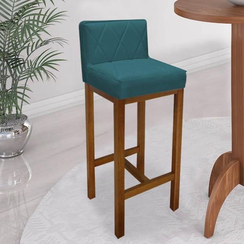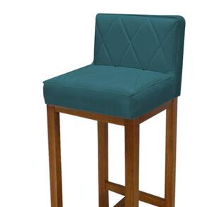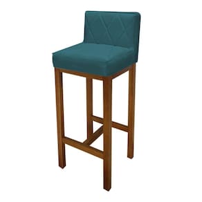 Banqueta Alta Com Encosto Loren Cozinha Balcão Bistrô Base Madeira Rústico Suede Azul Turquesa - Ahazzo Móveis Cor Azul Turquesa