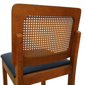 - Materiais: Estrutura em madeira de eucalipto maciço, com assento estofado, espuma D26 e tecido, encosto anatômico com telinha sextavada aplicada