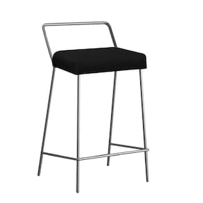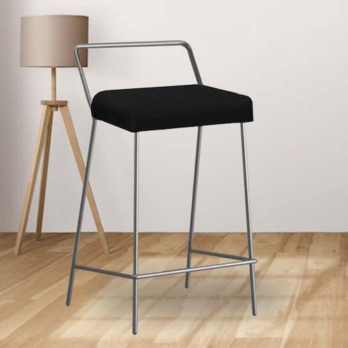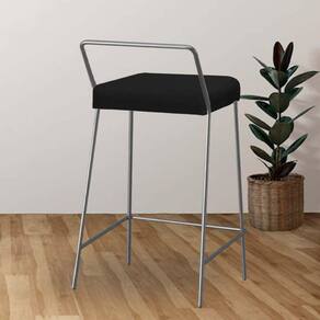 Banqueta Alta Com Encosto Donna Industrial Cozinha Bistrô Ferro Prata Suede Preto - Ahazzo Móveis