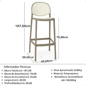Banqueta Alta com Encosto Roma em Polipropileno