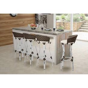 Banqueta Conforto em alumínio polido, possui acabamento do encosto e detalhes revestidos com fibra sintética especial, possuindo tratamento contra UV (junco ou vime sintético). Assento com espuma D28, encapada em courino ou tecido impermeável conforme escolha. Produto pode ser utilizado em qualquer ambiente da casa: área gourmet, cozinha, área externa, churrasqueira, balcão de bar, bistrôs.