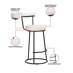 Banqueta Alta Cozinha 70cm Encosto Industrial Aço Kit 2 Ziria Pu S02 - D'rossi Cor Off White Transforme sua cozinha, área gourmet ou espaço comercial com o kit 2 Banquetas Altas Ziria. Com 96 cm de altura e 70 cm do assento ao chão, é perfeita para bancadas, ilhas e mesas altas, tornando-se ideal para ambientes residenciais como cozinhas e áreas de lazer, e também para estabelecimentos como cafeterias, bares e lanchonetes. A estrutura é fabricada em aço carbono com pintura epóxi preta, que garante durabilidade e resistência contra corrosão, enquanto o assento e o encosto fixos são estofados em espuma D-28 de alta densidade, oferecendo conforto prolongado. O revestimento em sintético PU, além de ser sofisticado, é durável, impermeável e fácil de limpar. Seu design moderno inclui base vazada em arco com hastes curvas, que une leveza visual e robustez. Além disso, conta com apoio para os pés integrado e suporta até 140 kg com segurança. A escolha ideal para quem deseja unir elegância, praticidade e conforto em qualquer espaço! Dimensões do Produto: Altura: 96 cm Largura: 38 cm Profundidade: 38 cm Peso: 12 kg Outras medidas: Altura para apoio dos pés: 24 cm Altura do Assento até o Chão: 70 cm Especificações do Produto: Material da Estrutura: Aço Carbono e Madeira de reflorestamento (eucalipto seco) evitando fungo e mofo. Material do Arco, bases e encosto: Aço Carbono Base do Assento: MDF e MDP de 15 mm Peso Suportado: Até 140 Kg sem impacto Acabamento: Pintura epóxi Revestimento do Assento: Sintético PU (Tecido Impermeável) Tipo de Assento: Fixo Possui Almofada no Assento: Sim, Fixa Material do Assento: Almofada com Espuma Enchimento do Assento: Espuma D-28 Possui Encosto: Sim Tipo de Encosto: Fixo Material do Encosto: Estrutura metálica e acabamento estofado no mesmo material do assento. Possui Pés: Sim Tipo de Pés: Base estilo arco Possui apoio de pés: Sim É Giratória: Não Possui Apoio para Braços: Não Possui Altura Regulável: Não Possui Rodízios: Não Diferenciais: Design Industrial; Base com ponteiras em PU; Grampos galvanizados na montagem e tapeçaria. Manual de Montagem: Acompanha manual e todos os acessórios para montagem. Complexidade da Montagem: Baixa Montagem: Necessita apenas a fixação do assento com parafusos. Garantia: 90 dias contra defeito de fabricação Instruções de Limpeza: Utilizar um pano limpo e levemente úmido Quantidade de Volumes: 1 Caixa Medida das Embalagens: Caixa 1: 86x45x45 cm Entrega: É feita somente até o térreo ou portaria. Confira sempre as medidas das embalagens para assegurar que o produto passe por portas e escadas do local.