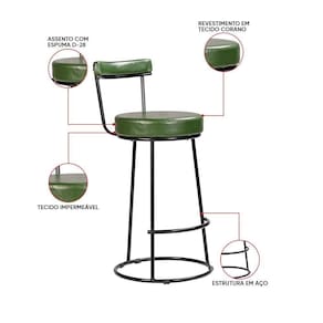 Banqueta Alta Cozinha 70cm Encosto Industrial Aço Kit 6 Ziria Pu S02 - D'rossi Cor Verde Transforme sua cozinha, área gourmet ou espaço comercial com o kit 6 Banquetas Altas Ziria. Com 96 cm de altura e 70 cm do assento ao chão, é perfeita para bancadas, ilhas e mesas altas, tornando-se ideal para ambientes residenciais como cozinhas e áreas de lazer, e também para estabelecimentos como cafeterias, bares e lanchonetes. A estrutura é fabricada em aço carbono com pintura epóxi preta, que garante durabilidade e resistência contra corrosão, enquanto o assento e o encosto fixos são estofados em espuma D-28 de alta densidade, oferecendo conforto prolongado. O revestimento em sintético PU, além de ser sofisticado, é durável, impermeável e fácil de limpar. Seu design moderno inclui base vazada em arco com hastes curvas, que une leveza visual e robustez. Além disso, conta com apoio para os pés integrado e suporta até 140 kg com segurança. A escolha ideal para quem deseja unir elegância, praticidade e conforto em qualquer espaço! Dimensões do Produto: Altura: 96 cm Largura: 38 cm Profundidade: 38 cm Peso: 36 kg Outras medidas: Altura para apoio dos pés: 24 cm Altura do Assento até o Chão: 70 cm Especificações do Produto: Material da Estrutura: Aço Carbono e Madeira de reflorestamento (eucalipto seco) evitando fungo e mofo. Material do Arco, bases e encosto: Aço Carbono Base do Assento: MDF e MDP de 15 mm Peso Suportado: Até 140 Kg sem impacto Acabamento: Pintura epóxi Revestimento do Assento: Sintético PU (Tecido Impermeável) Tipo de Assento: Fixo Possui Almofada no Assento: Sim, Fixa Material do Assento: Almofada com Espuma Enchimento do Assento: Espuma D-28 Possui Encosto: Sim Tipo de Encosto: Fixo Material do Encosto: Estrutura metálica e acabamento estofado no mesmo material do assento. Possui Pés: Sim Tipo de Pés: Base estilo arco Possui apoio de pés: Sim É Giratória: Não Possui Apoio para Braços: Não Possui Altura Regulável: Não Possui Rodízios: Não Diferenciais: Design Industrial; Base com ponteiras em PU; Grampos galvanizados na montagem e tapeçaria. Manual de Montagem: Acompanha manual e todos os acessórios para montagem. Complexidade da Montagem: Baixa Montagem: Necessita apenas a fixação do assento com parafusos. Garantia: 90 dias contra defeito de fabricação Instruções de Limpeza: Utilizar um pano limpo e levemente úmido Quantidade de Volumes: 3 Caixas Medida das Embalagens: Caixa 1: 86x45x45 cm; Caixa 2: 86x45x45 cm; Caixa 3: 86x45x45 cm Entrega: É feita somente até o térreo ou portaria. Confira sempre as medidas das embalagens para assegurar que o produto passe por portas e escadas do local.