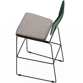 Revestimento do encosto em Facto Verde Musgo de alta qualidade, com acabamento semi brilho.