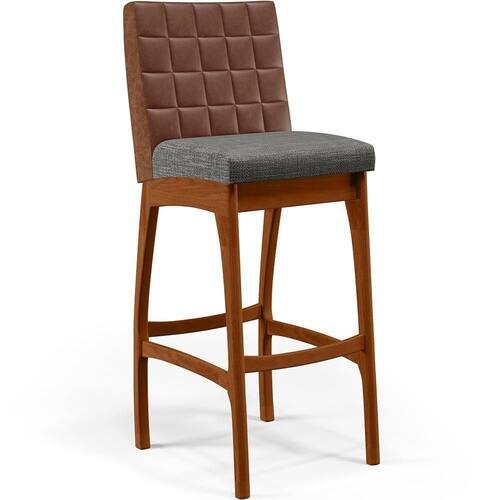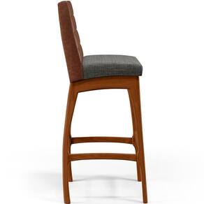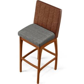 ndo muita excelência, a Banqueta Alta Cozinha Sala De Jantar Fixa Mila B04 Couríssimo Marrom Linho Cinza Escuro - Lyam Decor é o complemento que faltava para deixar sua casa ainda mais extraordinária. Seu encosto com costura em padrão quadriculado e assento estofados, centralizam em si uma graciosidade estonteante, sem perder todo o conforto. A estrutura em madeira, na cor nozes, também é digna de notoriedade, por imprimir bastante personalidade a sua decoração. Vale ressaltar ainda, o apoio para os pés que garante maior segurança à mesma.