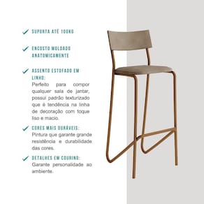 A Banqueta Carraro é o complemento ideal para diversos espaços, sendo a união de design moderno, funcionalidade e conforto. Seu encosto estofado e moldado anatomicamente, combinado com o assento estofado e o apoio para os pés, transformam esse item em uma peça muito confortável, além disso sua estrutura em aço garante maior resistência para o produto.