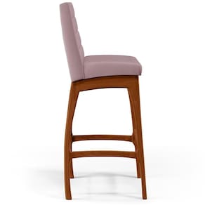 ndo muita excelência, a Banqueta Alta Para Cozinha Sala de Jantar Fixa Mila B04 Suede Rosê - Lyam Decor é o complemento que faltava para deixar sua casa ainda mais extraordinária. Seu encosto com costura em padrão quadriculado e assento estofados, centralizam em si uma graciosidade estonteante, sem perder todo o seu conforto. A estrutura em madeira, na cor nozes, também é digna de notoriedade, por imprimir bastante personalidade a sua decoração. Vale ressaltar ainda, o apoio para os pés que garante maior à mesma.