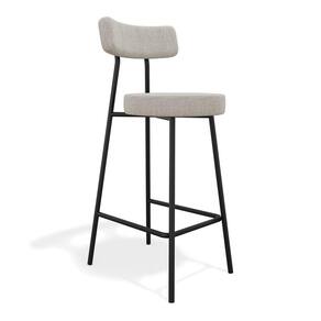 Banqueta Alta Cozinha Kobe Estofada Com Encosto Linho Cinza - Desk Design