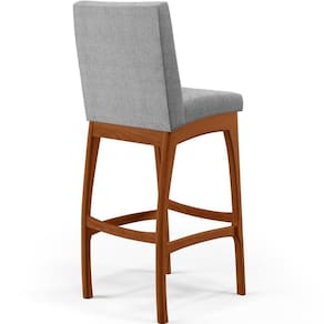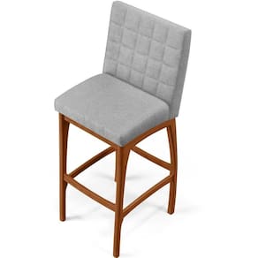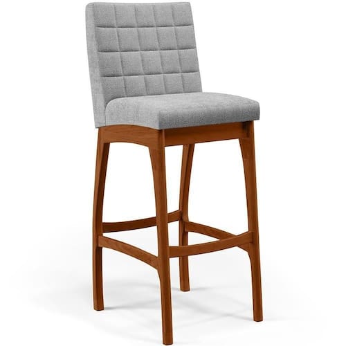 ndo muita excelência, a Banqueta Alta Para Cozinha Sala De Jantar Fixa Mila B04 Bouclê Cinza - Lyam Decor é o complemento que faltava para deixar sua casa ainda mais extraordinária. Seu encosto com costura em padrão quadriculado e assento estofados, centralizam em si uma graciosidade estonteante, sem perder todo o conforto, sendo revestidos pelo riquíssimo tecido em bouclê que por si só já é um espetáculo. A estrutura em madeira, na cor nozes, também é digna de notoriedade, por imprimir bastante personalidade a sua decoração. Vale ressaltar ainda, o apoio para os pés que garante maior segurança à mesma.