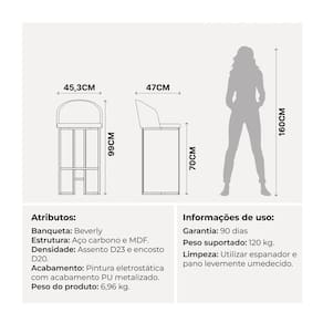 A Banqueta Beverly é a união perfeita entre sofisticação, conforto e durabilidade. Produzida com estrutura em aço-carbono de alta qualidade, essa peça possui acabamento em pintura eletrostática, conferindo resistência à corrosão e um visual moderno e requintado.