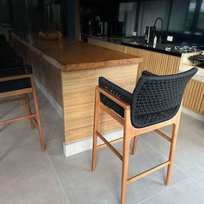 Banquetas ideais para ambientes como: área gourmet, cozinha, varandas, bares, lanchonetes. Possui estrutura em madeira Jequitibá, trançada artesanalmente em Corda Náutica.