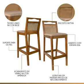 A Banqueta Valência em madeira maciça com acabamento em verniz combina estilo e conforto para sua cozinha. Assento em espuma D26, encosto em rattan e revestimento em linho bege completam o design atemporal. Perfeita para bancadas/mesas de 100/105cm, a Valência eleva o nível de requinte do seu ambiente. Invista em qualidade e leve elegância para sua casa!CARACTERÍTICAS TÉCNICAS:- Produzido em Madeira Maciça;- Acabamento em Verniz na cor Amêndoa;- Assento Preenchido com Espuma D26; - Encosto com Revestimento em Rattan com Fibra Sintética;- Revestimento em Linho na cor Bege.*Indicada para Bancadas/Mesas com Alt. 100/105cm.