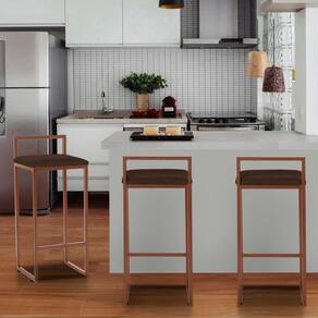 A Banqueta Alta Decorativa Estofada Adélia Com Armação Dourada é uma banqueta