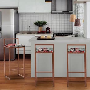 A Banqueta Alta Decorativa Pietra Em Suede Com Armação Dourada é uma banqueta