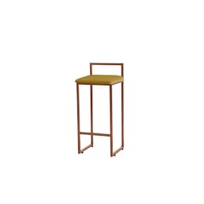 Banqueta Alta Decorativa Pietra Em Suede Com Armação Dourada - Amarelo Ouro