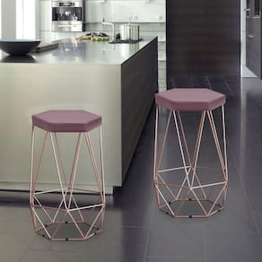 A Banqueta Alta Decorativa Rubi Em Suede Com Armação Bronze é uma banqueta
