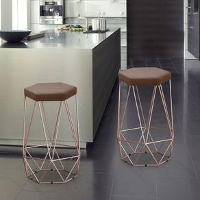 A Banqueta Alta Decorativa Rubi Em Suede Com Armação Bronze é uma banqueta