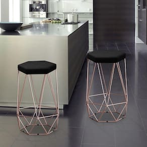 A Banqueta Alta Decorativa Rubi Em Suede Com Armação Bronze é uma banqueta