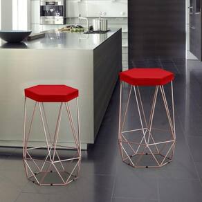 A Banqueta Alta Decorativa Rubi Em Suede Com Armação Bronze é uma banqueta