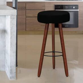 Banqueta Alta Estofada Dalia Em Suede Com Pés Em Madeira - Marrom