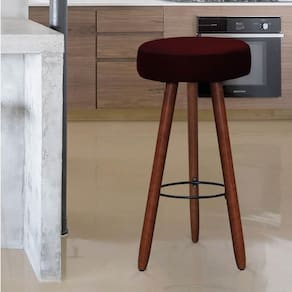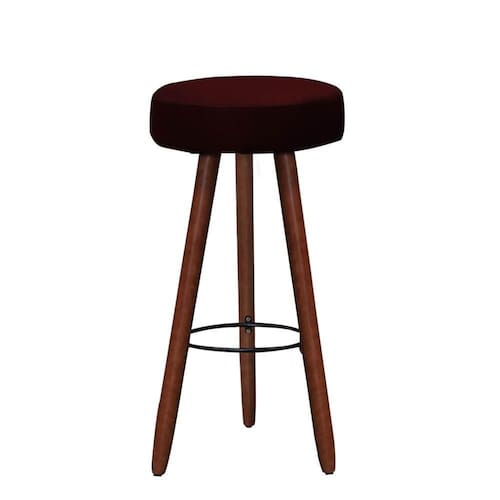 Banqueta Alta Estofada Dalia Em Suede Com Pés Em Madeira